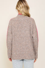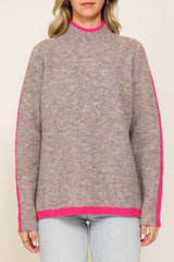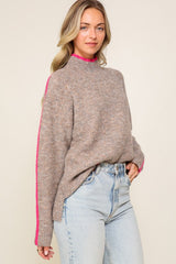 Seam Line Pont Turtleneck Sweater Taupe/Fuchsia