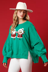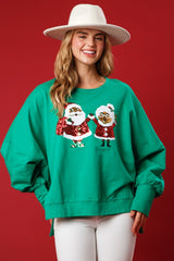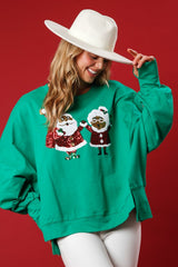 Sequin Santa & Mrs. Claus Sweatshirt Green