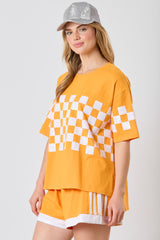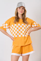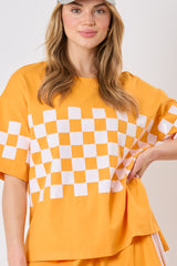 Sequins Checker Short Sleeve Top Orange