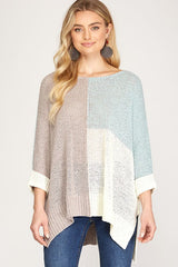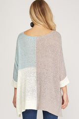 Sheer Color Block Knit Pullover Grey/Sky Blue