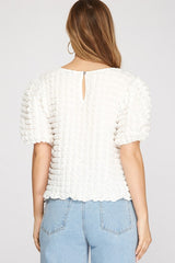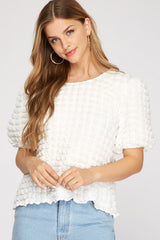 Short Sleeve Bubble Textured Knit Top Off White