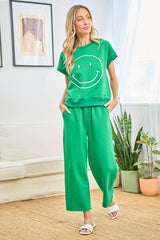 Smile Face Sweatshirt Top Kelly Green