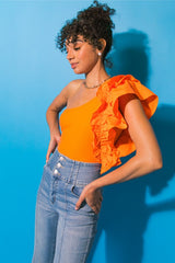 Solid Knit Puff One Sleeve Bodysuit Orange
