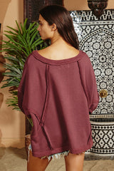 Solid Raw Edge Detail Top Burgundy