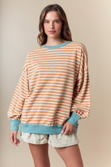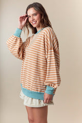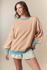 Stripe Color Block Long Sleeve Top Caramel