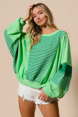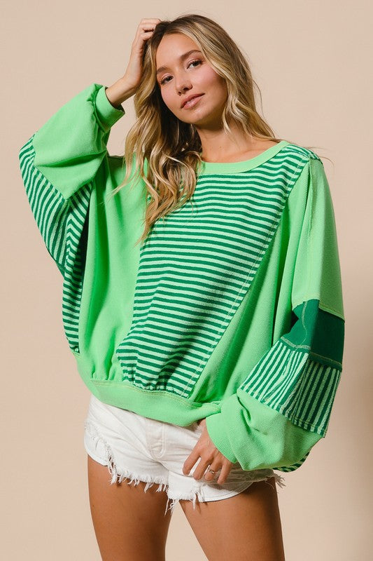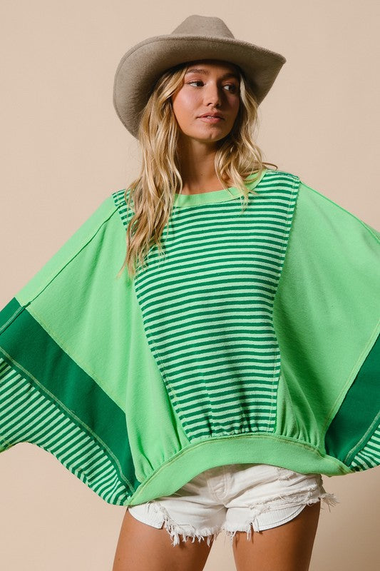Stripe Thermal Mix Top Green