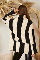 Stripe Turtleneck Sweater Cream/Black