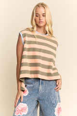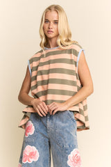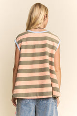 Striped Sleeveless Relaxed Fit Top Apricot Olive