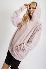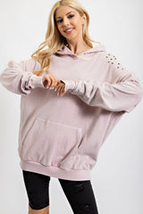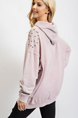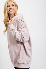 Washed Terry Stud Shoulder Hoodie Top Rose