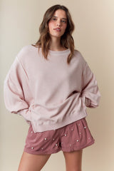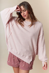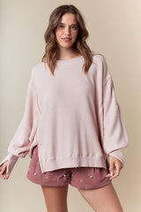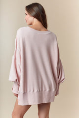 Washed Waffle Oversized Top Ash Pink