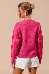 Chenille Textured Heart Knitted Sweater Fuchsia
