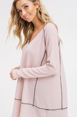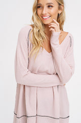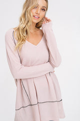 Waffle Textured V-Neck Knit Tunic Top Blush