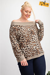 Curvy!!! Long Sleeve Animal Printed Hacci Rib Band Detailing Knit Top. Dolman Sleeves