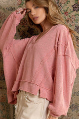Balloon Sleeve Hooded Knit Top Rose Pink