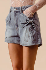 Bow Ribbon Knot Pocket Shorts Denim