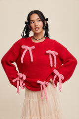 Bows All Over Chunky Knit Sweater Red