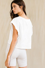 Cap Sleeve Split-Neck Solid Crop Top Ivory
