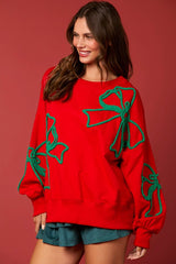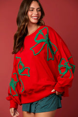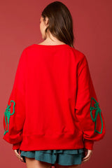 Christmas Bows Sweatshirt Top Red