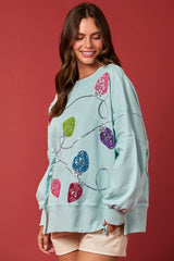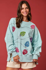 Christmas Lights Sequins Sweatshirt Top Baby Blue