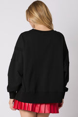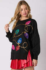 Christmas Lights Sequins Sweatshirt Top Black