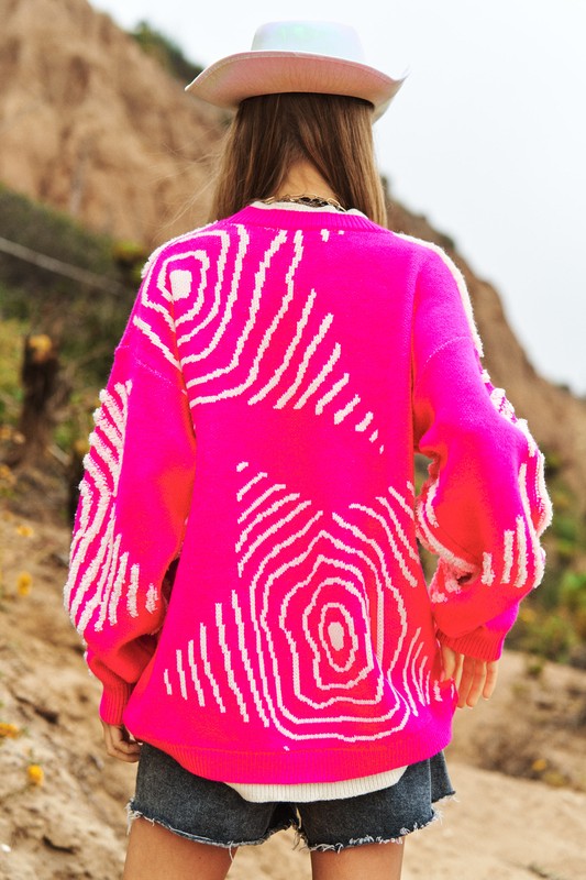 Chunky Knit pattern Detail Pullover Sweater Pink