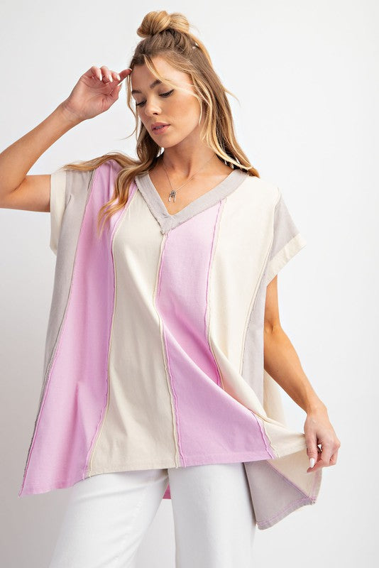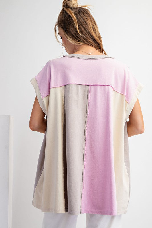 Color Block Cotton Knit Tunic Top Rose Grey