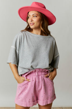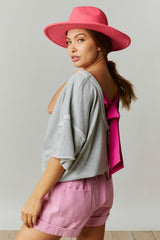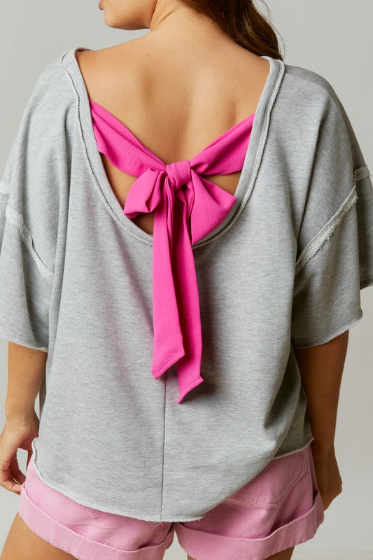 Color Block Tee with Back Bow Detail Grey