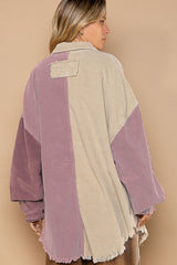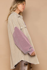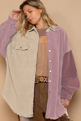 Contrast Panels Corduroy Shacket Taupe/Burgundy