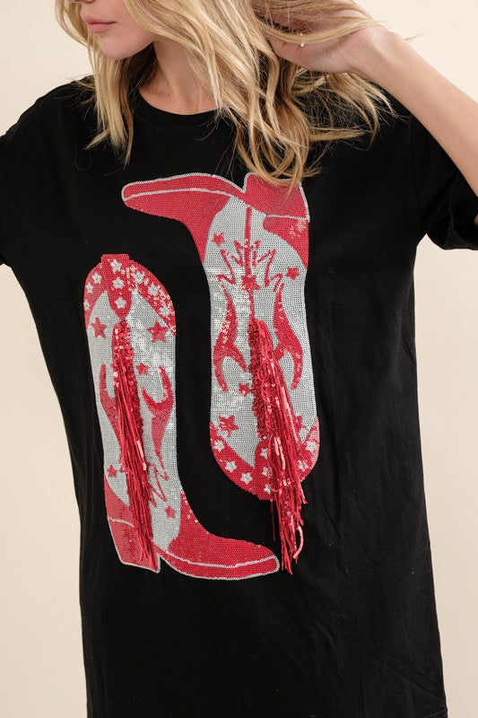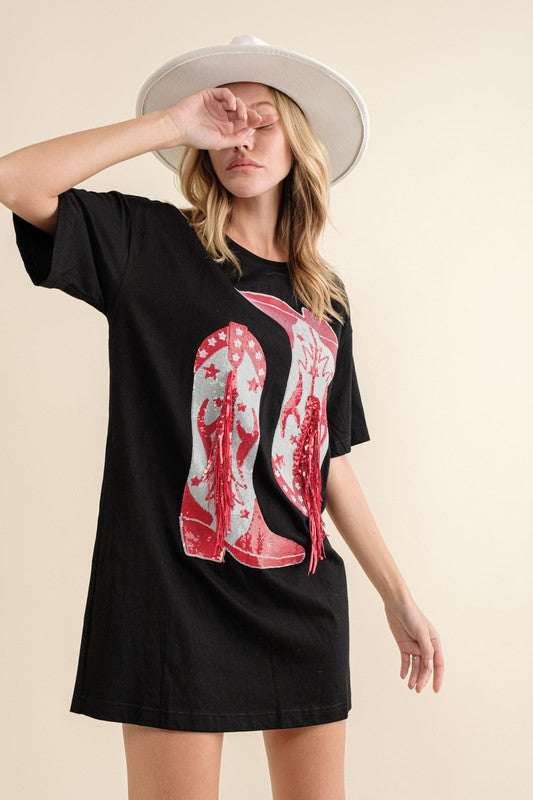Cotton Sequin Western Cowboy Dress Black