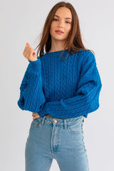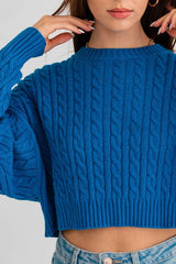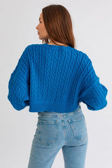 Cropped Cable Knit Sweater Cobalt