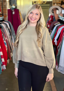 Drop Shoulder Balloon Sleeve Sweatshirt Khaki