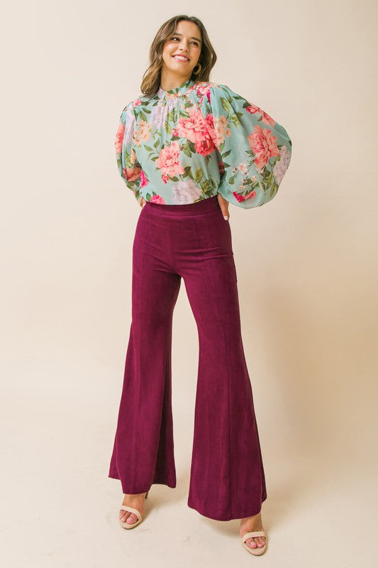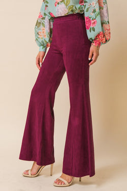 Faux Suede Flare Bottom Zipper Pants Magenta