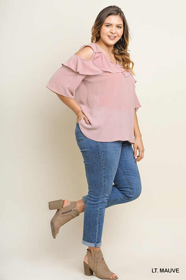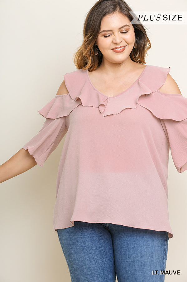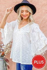 Feather Detail 3/4 Sleeve Slub Top Plus Off White