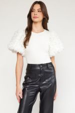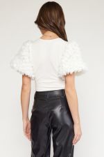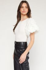 Floral Applique Sleeve Bodysuit Off White