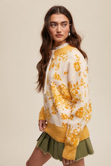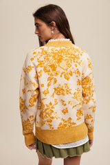 Floral Design Crew Neck Knit Sweater Yellow