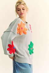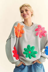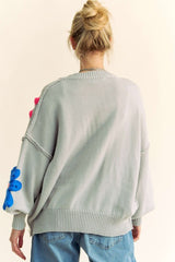 Floral Patched Pullover Sweater Silver