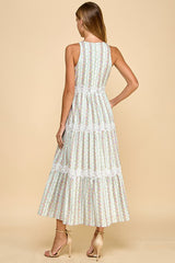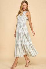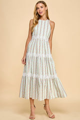 Floral Stripe Print Midi Dress Blue