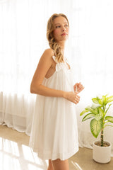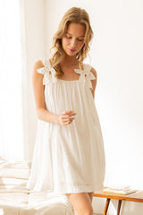 Flowy Sleeveless Mini Dress w/Bow Off White