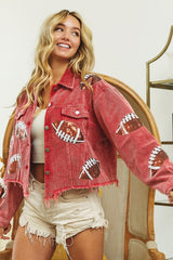 Football Sequin Corduroy Jacket Red