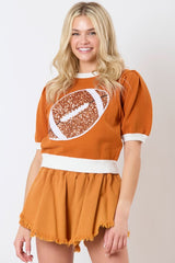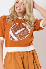 Football Sequin Shirt Sleeve Sweater Burnt Orange