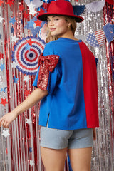 Fourth of July Sequin Bow Sleeve Top Red/Blue