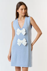 Front Bow Detail Sweater Mini Dress Sky/White