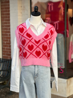 Fuzzy Heart Cropped Sweater Vest Pink/Red