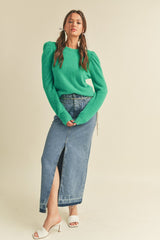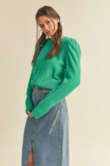 Fuzzy Knit Puff Sleeve Sweater Green
