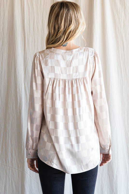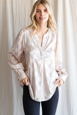 Gingham Check Pattern Top Champagne
