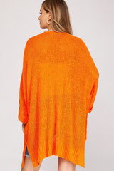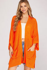Half Sleeve Open Front Sweater Cardigan Tangerine