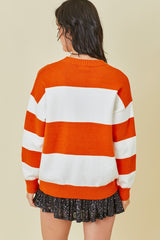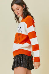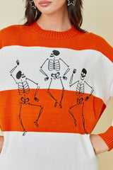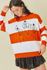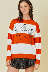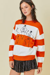 Halloween Skeleton Stripe Sweater Orange
