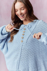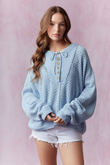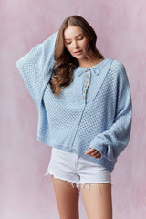Henley Neck Dolman Sleeve Sweater Light Blue