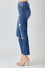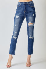 High Rise Distressed Relaxed Skinny Jeans Dark