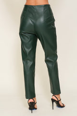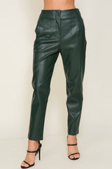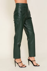 High Waist Faux Leather Pants Forest Green